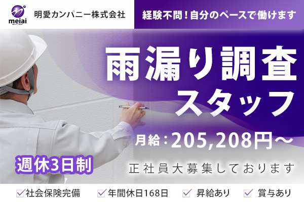 未経験から専門職へ。週休3日制で働ける雨漏り調査スタッフ(正社員)募集当社では、建物の雨漏り原因を調査・特定する雨漏り…