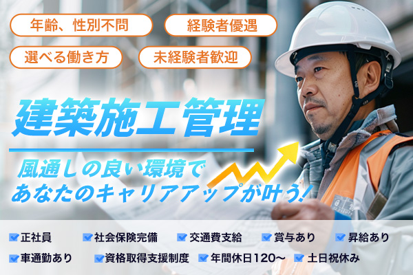 今回募集するのは、建築施工管理の即戦力人材です。